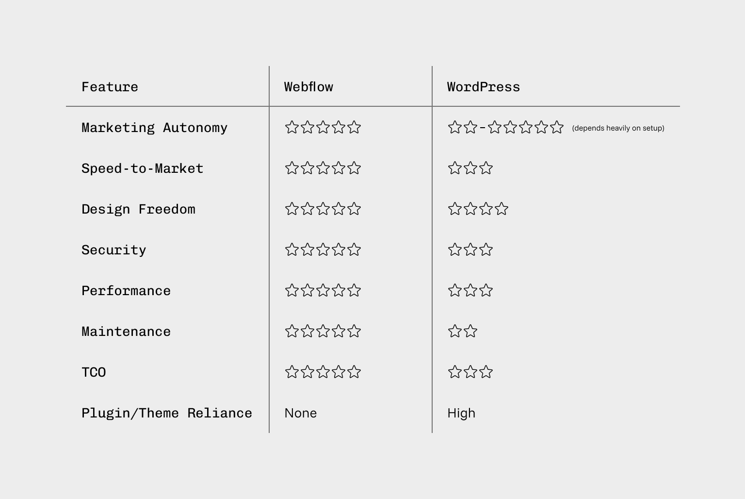 For marketing teams that want speed and freedom, Webflow is the clear leader.